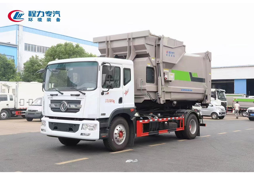 新工藝國六東風(fēng)多利卡D9勾臂車+移動(dòng)壓縮箱