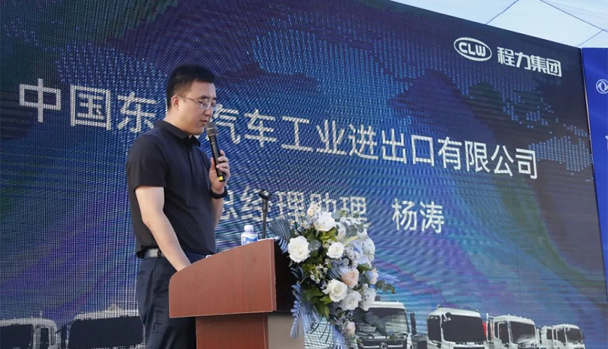 中國東風汽車工業(yè)進出口有限公司總經(jīng)理助理楊濤在活動中,做了重要講話。他強調(diào),首先要感謝程力集團一直以來,與東風公司全面戰(zhàn)略合作和大力支持,并向參加推薦會的來賓與銷售經(jīng)理表示誠摯的問候。