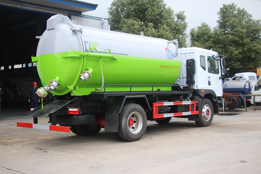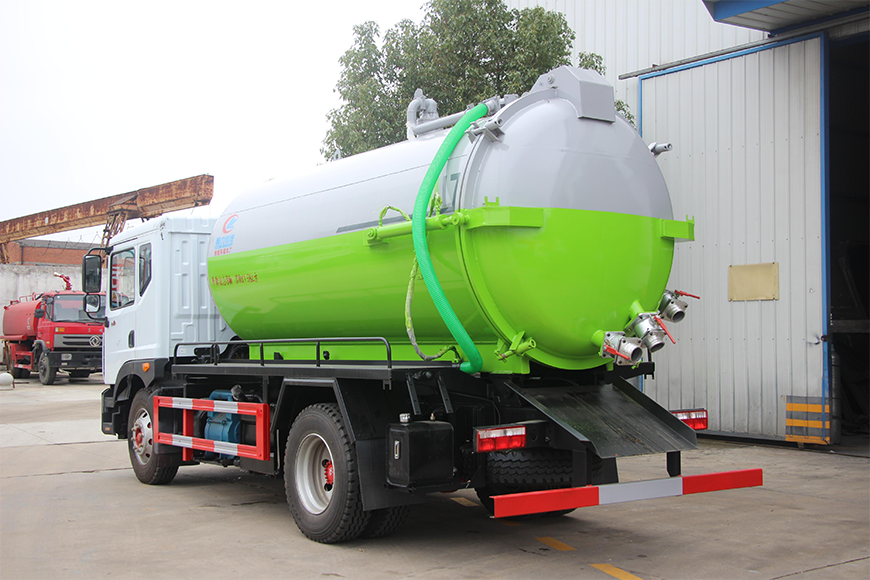 | 上裝配置 | 污罐:Q235武鋼6MM厚碳鋼板,標(biāo)配采用億豐SK-12水循環(huán)泵。防溢閥,視糞管,配一根8米吸污管,罐體封頭一次壓鑄成型、罐體帶舉升,后蓋為液壓開(kāi)啟。罐內(nèi)污物可通過(guò)后蓋直接傾倒,具有真空度高、噸位大、效率高、用途更廣泛的特點(diǎn)。 | ||